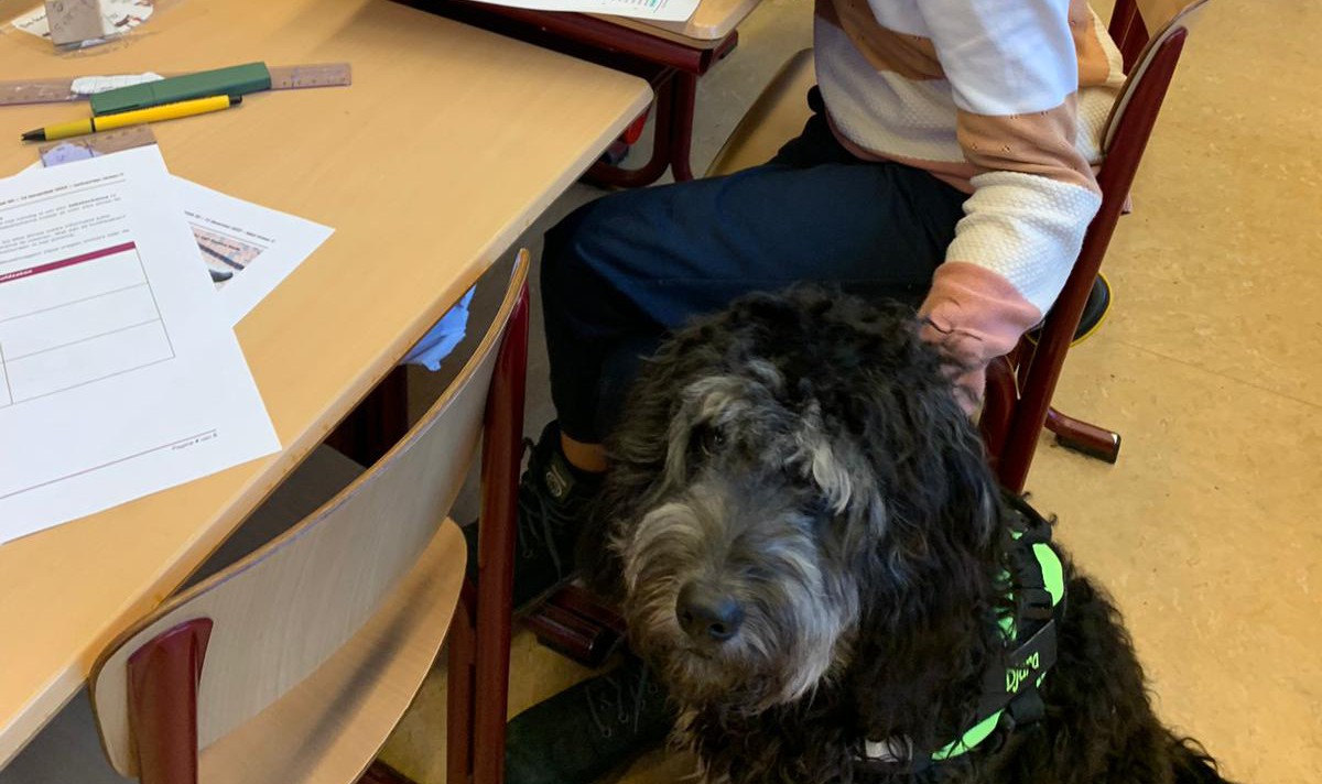 • Schoolhond Djara helpt de leerlingen in de klas...